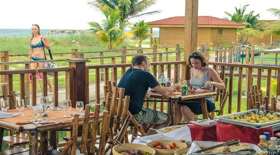 Nel ristorante, anch’esso costruito con materiali locali, sono serviti piatti tipici cubani e di cucina internazionale in un ambiente quasi familiare. Ad opzione dei clienti vi è la possibilità di gustare saporite aragoste.